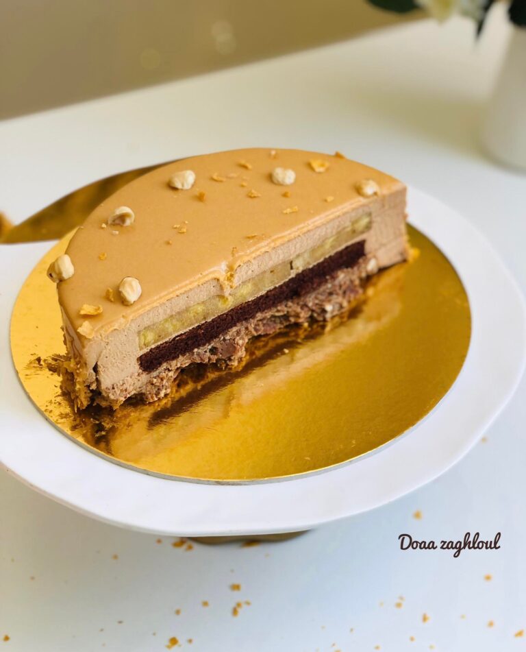 ورائع بعمل كيك الموس كما هو واضح بالصوره مع حشوات اخري رائعه مثل جلي الموز ورقائق الفيوتين المقرمش